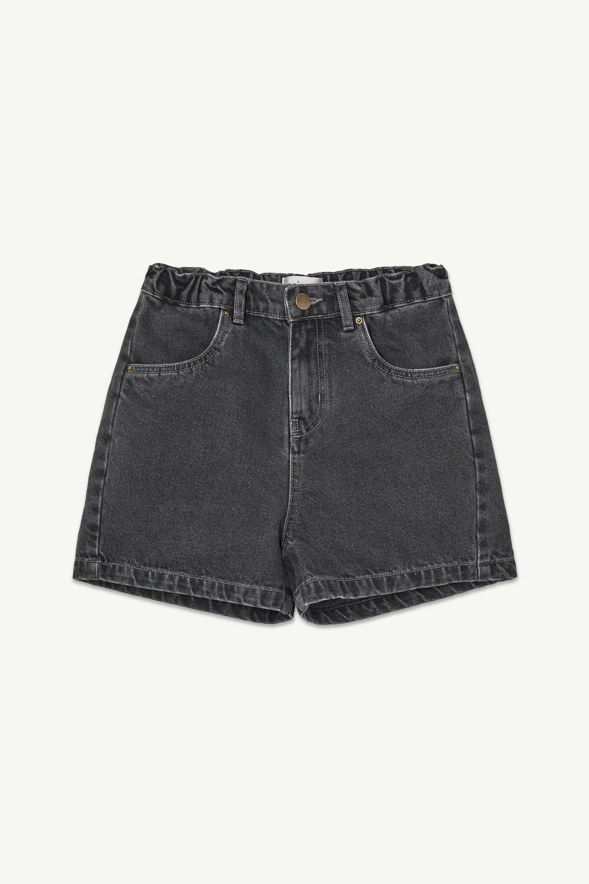 Our staple Denim Shorts in faded black denim, made for kids' boundless energy. Cut from organic cotton denim, with an internal adjustment elasticated waist and a loose fit, they are a perfect addition to any summer wardrobe.