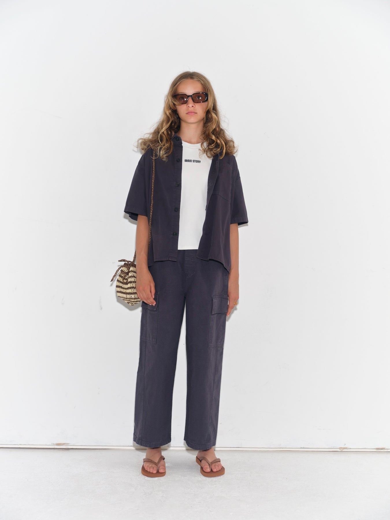 A fun addition to their wardrobe, this short-sleeve, boxy wide-fit shirt in Phantom is made from soft organic cotton. Featuring a drop shoulder and a relaxed, contemporary fit, it's perfect for effortless summer style.