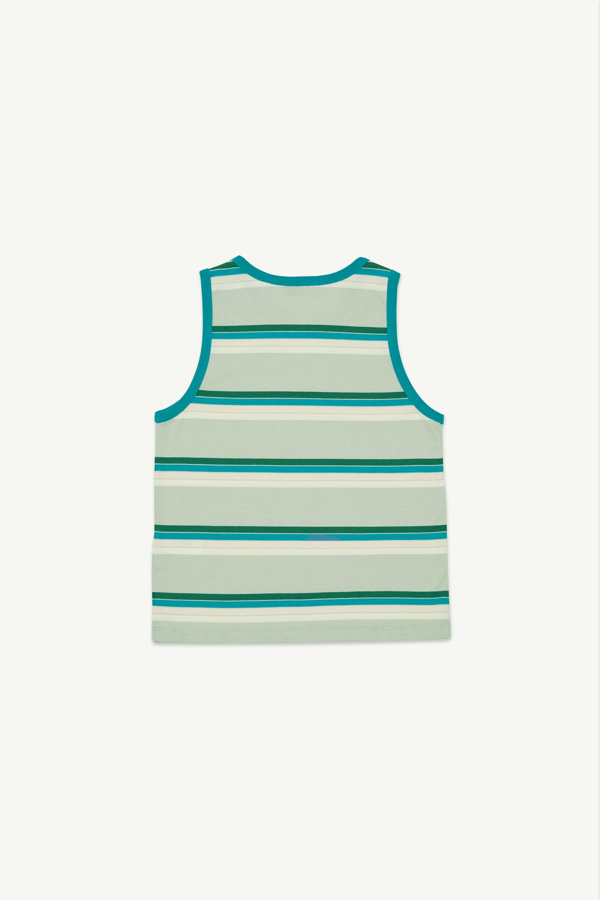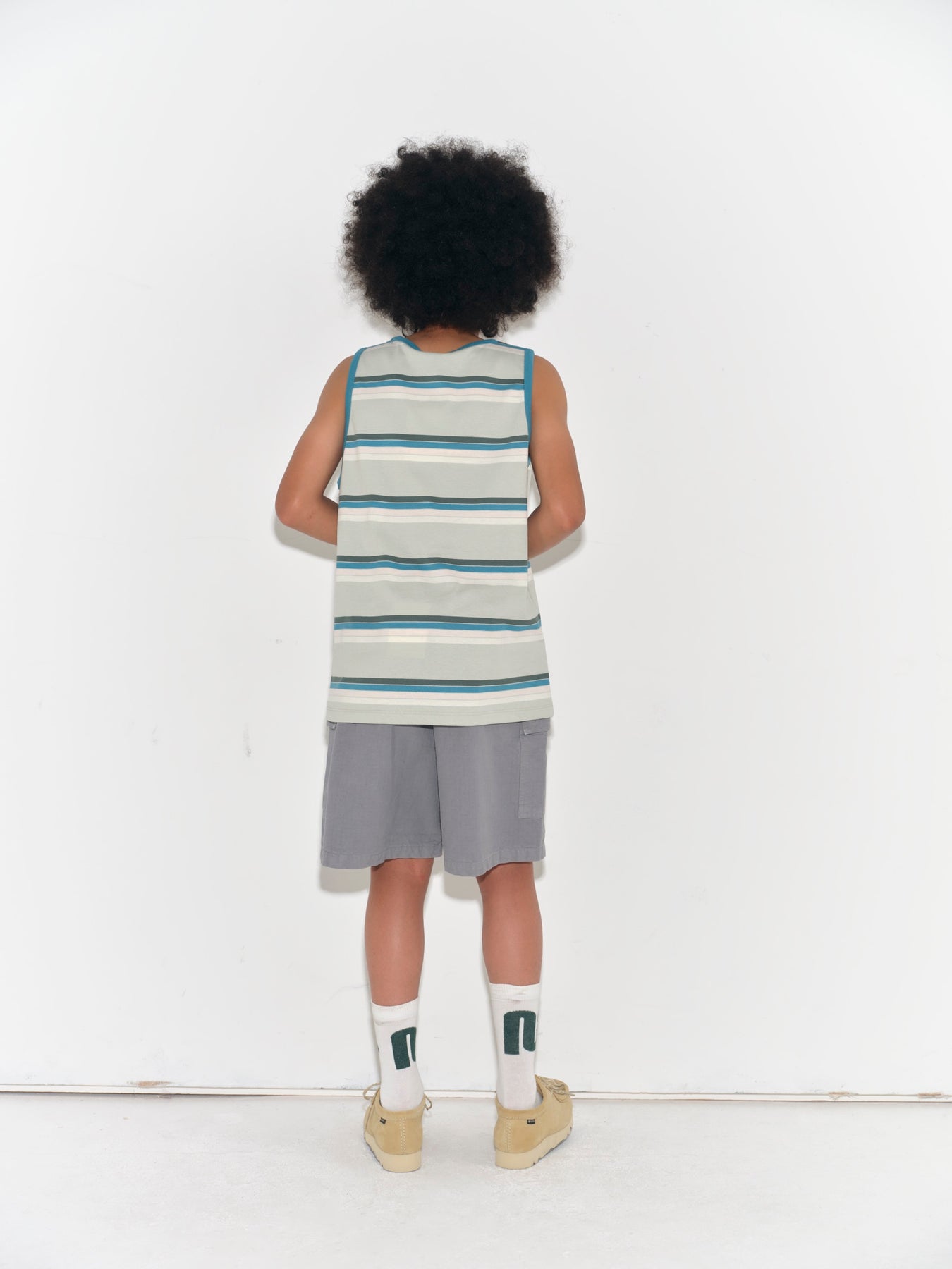 A great summer essential, the Green Tint Stripe Vest has a loose, sporty fit with generous armholes and a relaxed silhouette for a laid-back look that’s ideal for warm days. Bound neck and armholes give a retro finish.