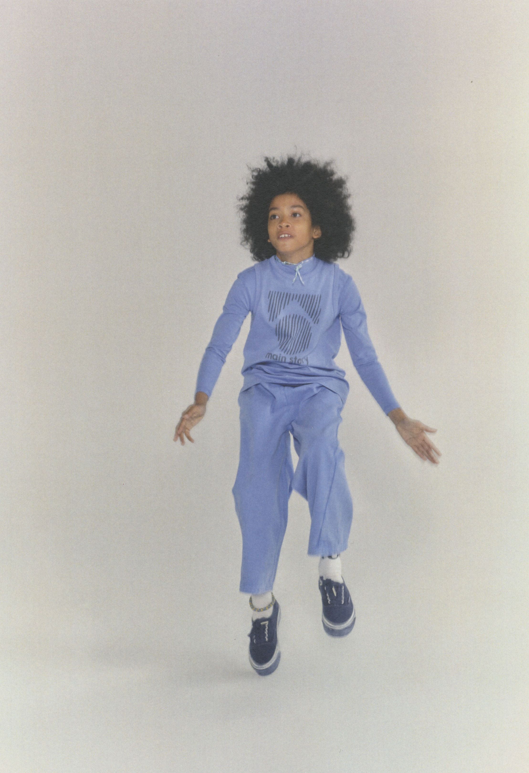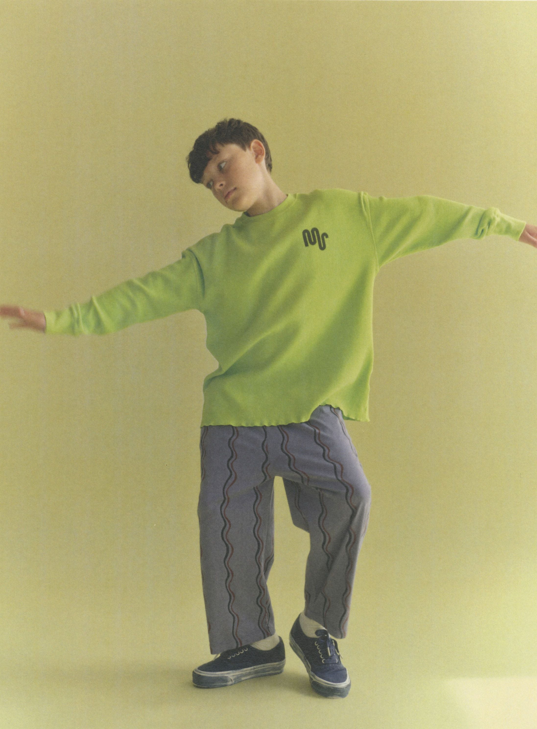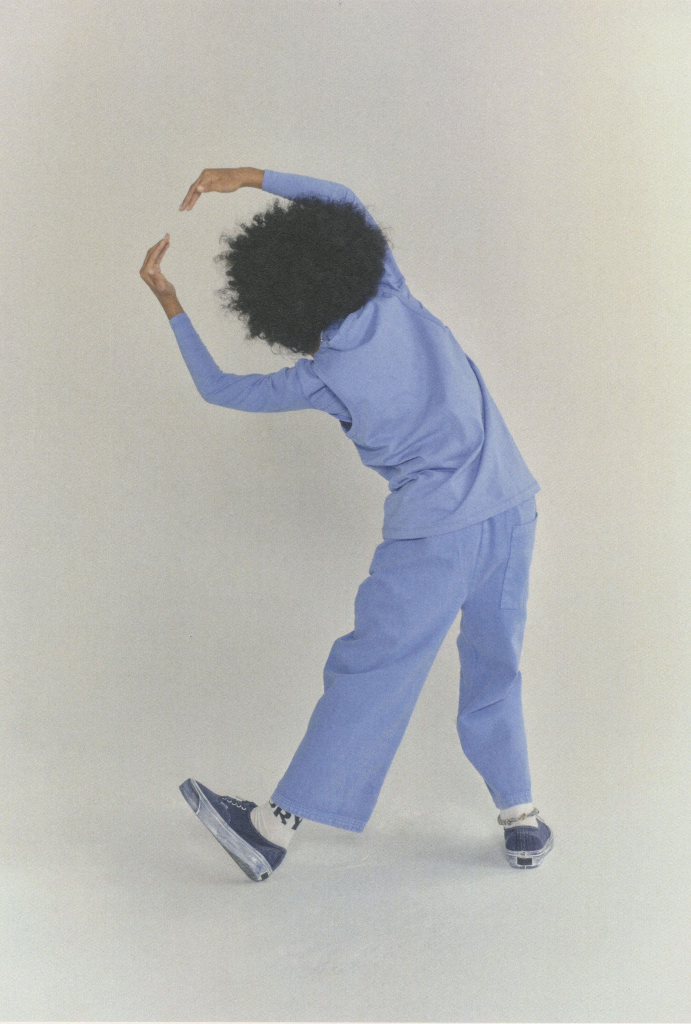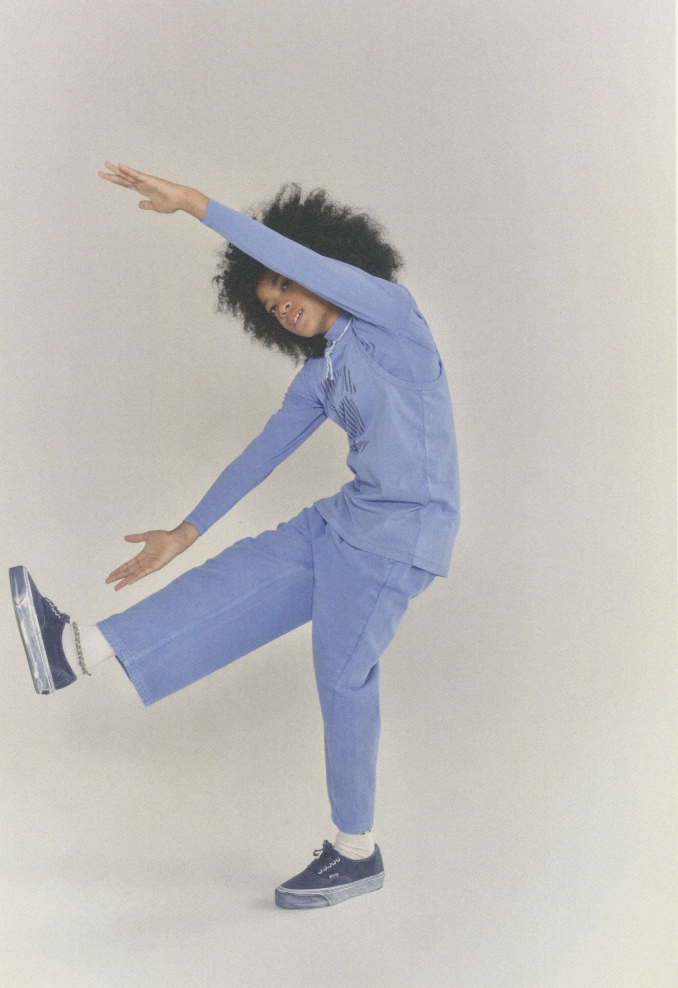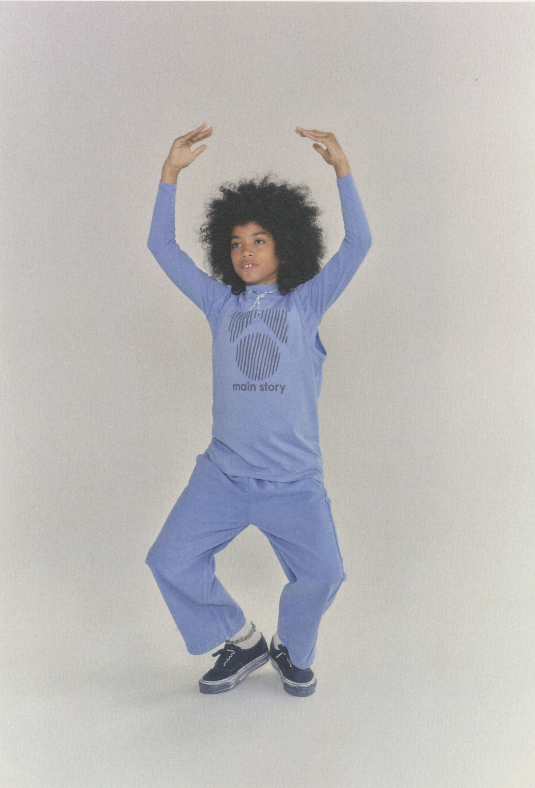 In a studio the group of friend’s dance, contort, twist, and jump, never letting the dust settle, celebrating the transformative power of colour and in their beautiful chaotic energy. Here, clothing and comfort intertwines with colour and movement, creating a living tapestry of art and expression.