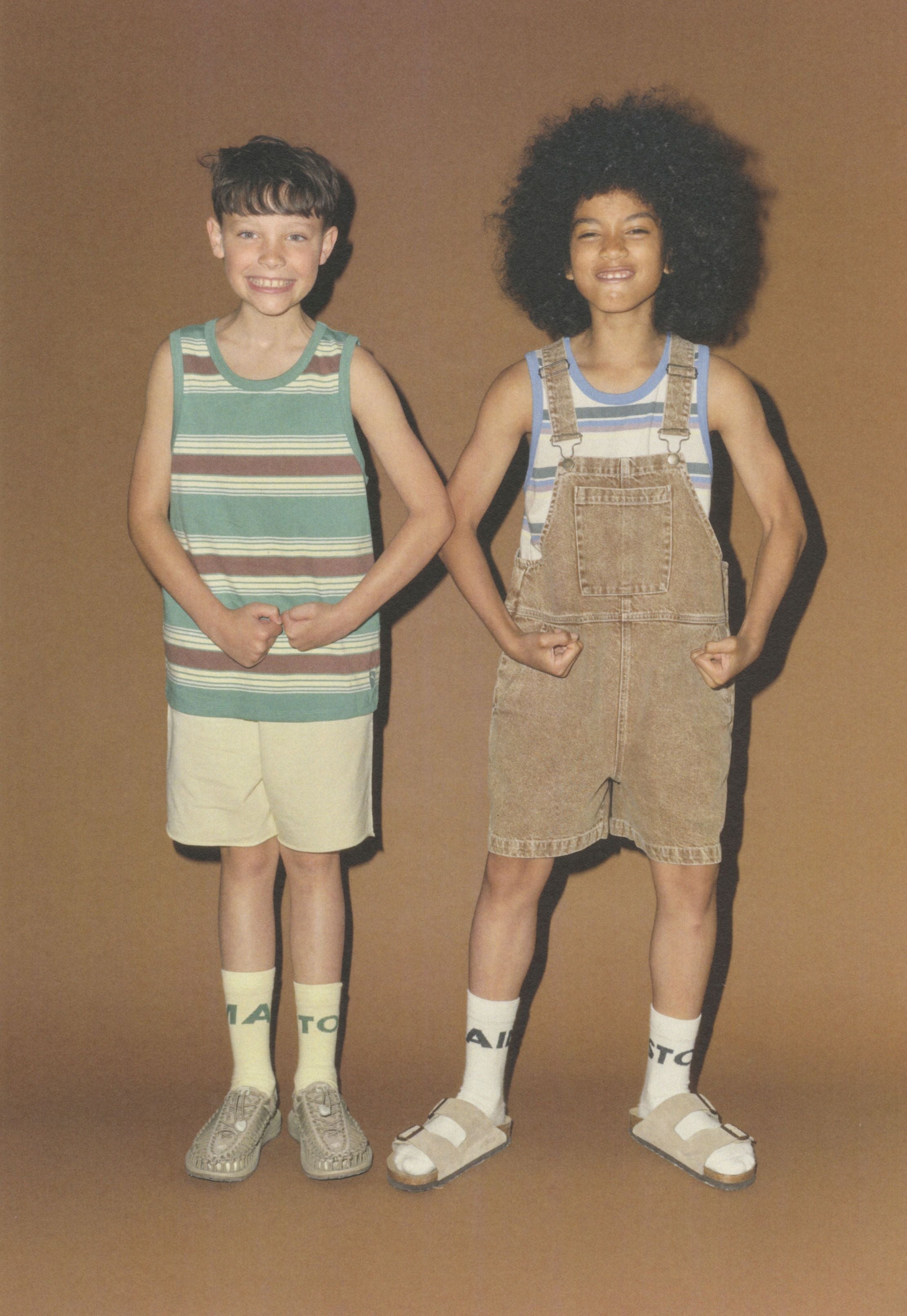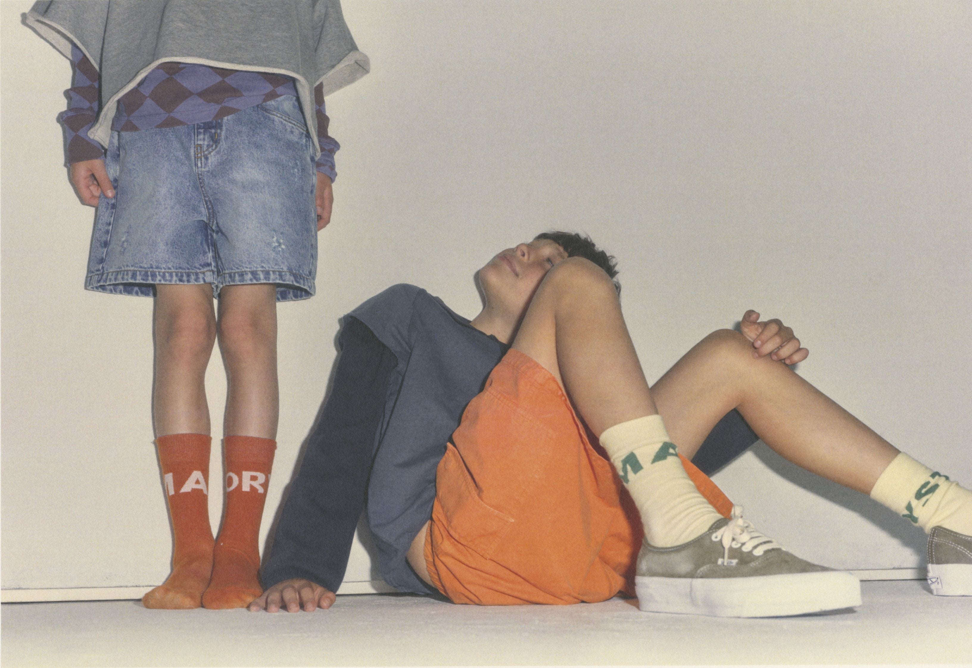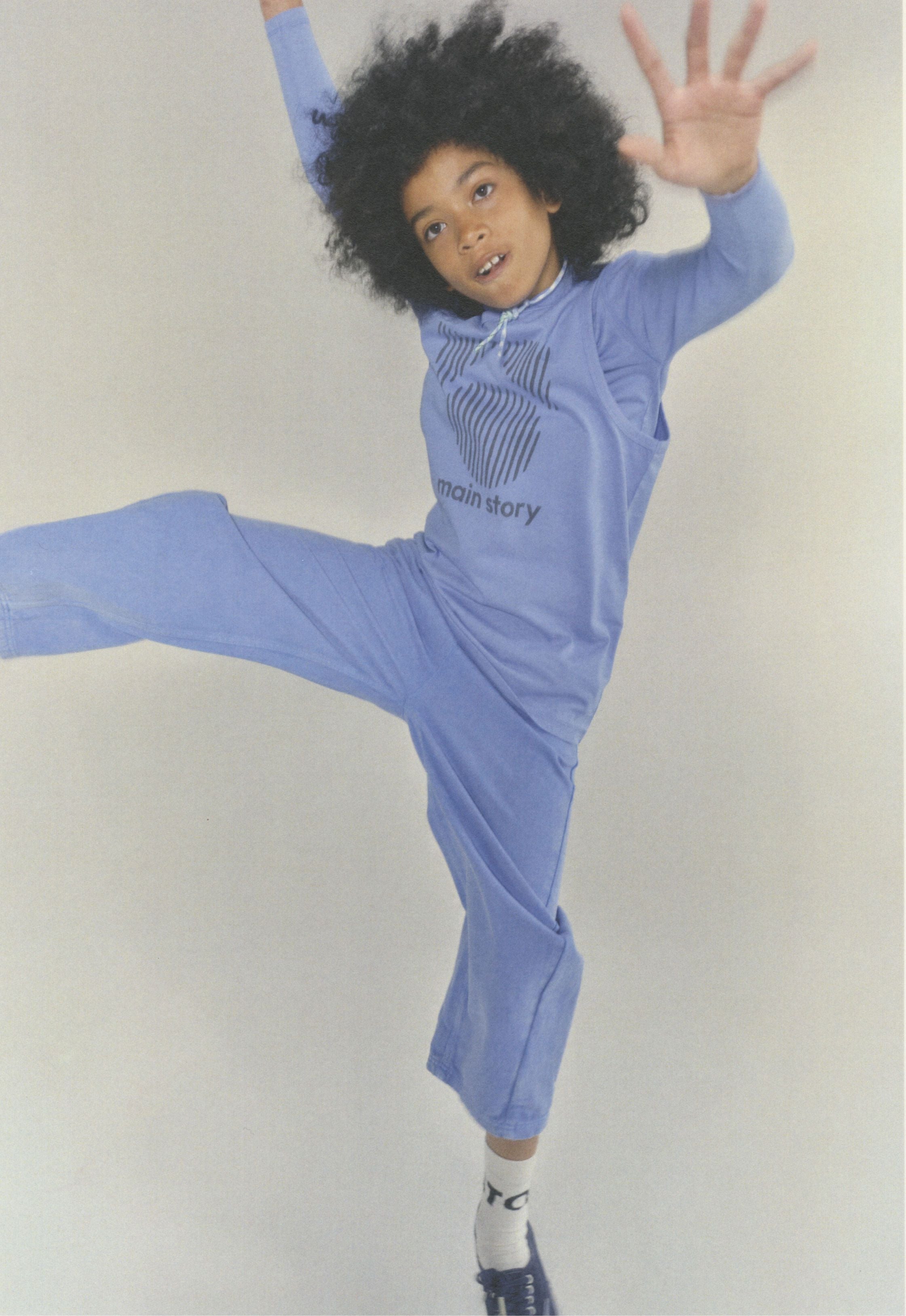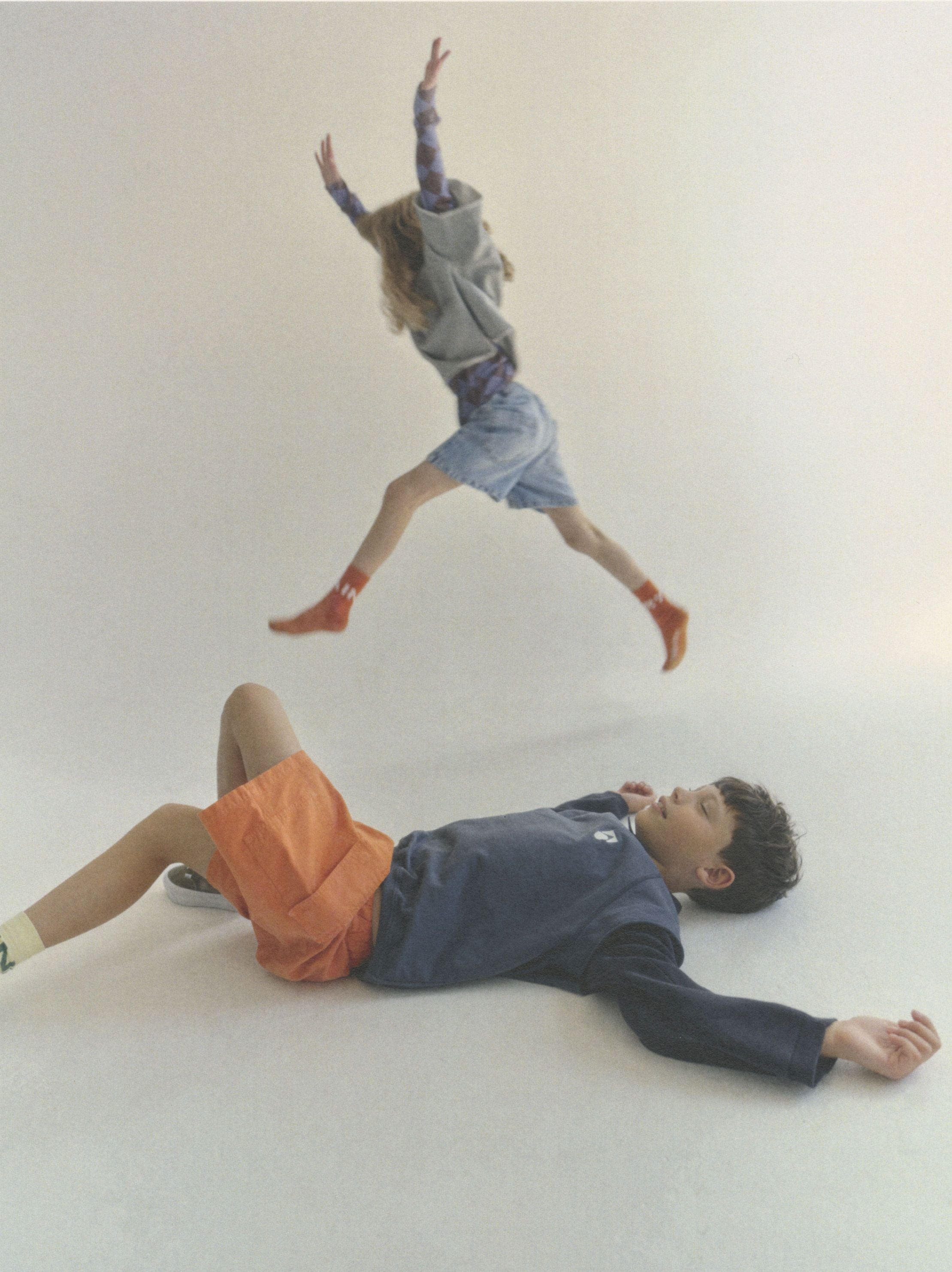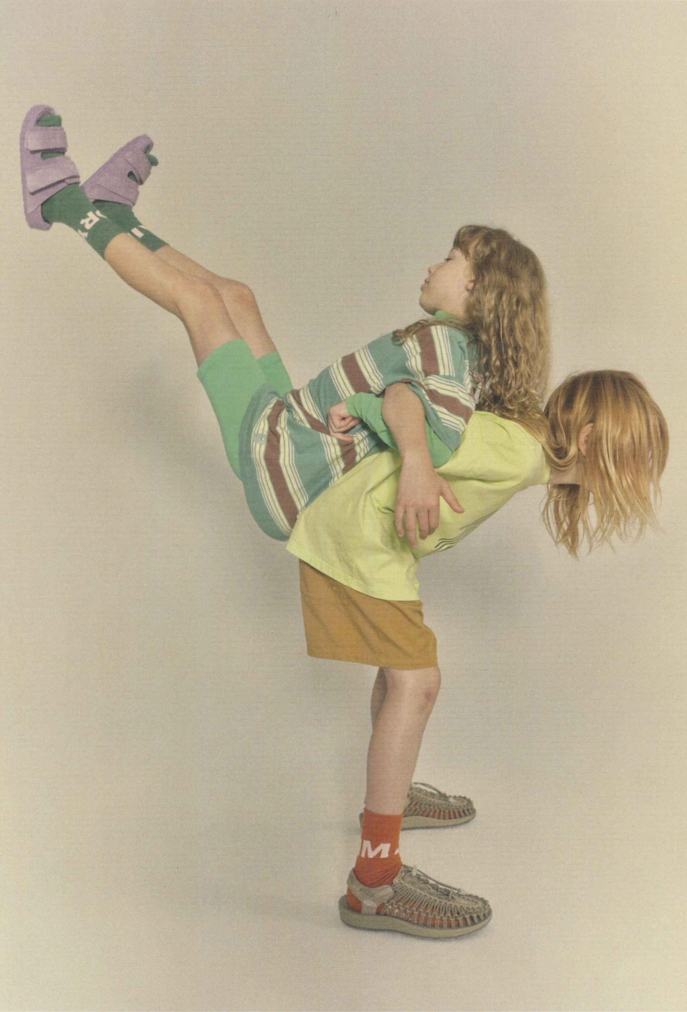 In a studio the group of friend’s dance, contort, twist, and jump, never letting the dust settle, celebrating the transformative power of colour and in their beautiful chaotic energy. Here, clothing and comfort intertwines with colour and movement, creating a living tapestry of art and expression.